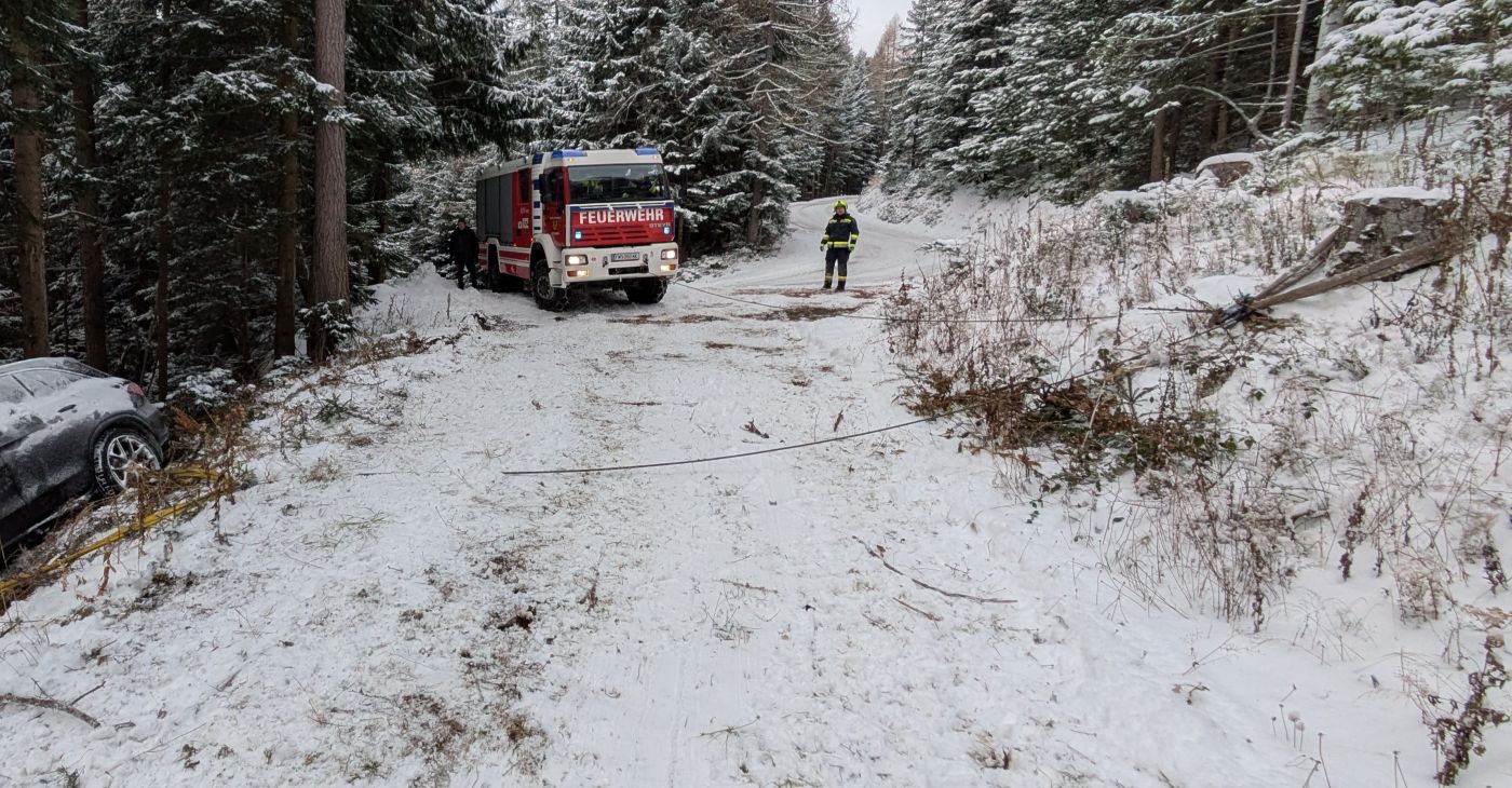 Am Samstag kam es am Hinterotter in einer Kehre zu einem Fahrzeugunfall, bei dem ein Pkw über die Fahrbahn hinausgerutscht war. Das Fahrzeug wurde seitlich geborgen. Um weitere Schäden während der Bergung zu vermeiden, wurden im Vorfeld Wurzeln und Äste entfernt. Anschließend konnte das Fahrzeug gesichert geborgen werden.
