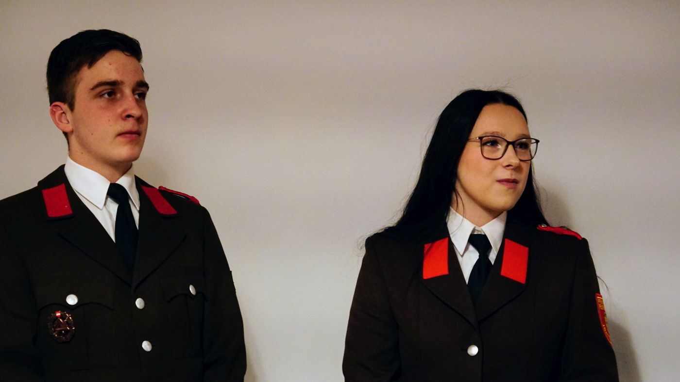 Im Anschluss erfolgte die Angelobung und Überstellung von der Feuerwehrjugend in den Aktivdienst von Clara Aigner, Johanna Eder und Simon Rennhofer. Zudem wurden Eva Trettler und Dominik Gruber vom Probefeuerwehrmitglied zum Feuerwehrmitglied befördert.