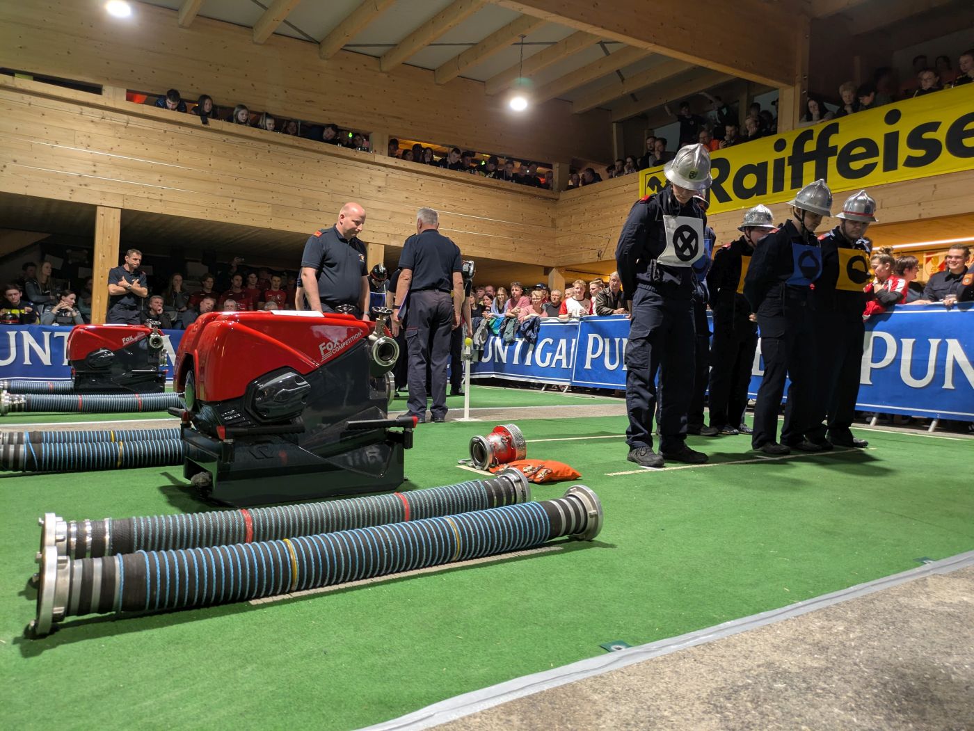 Die Übung wurde im Feuerwehrhaus abgehalten und hatte das Ziel, nicht alltägliche Aufgaben mit frei wählbaren Mitteln aus den Feuerwehrfahrzeugen zu lösen.