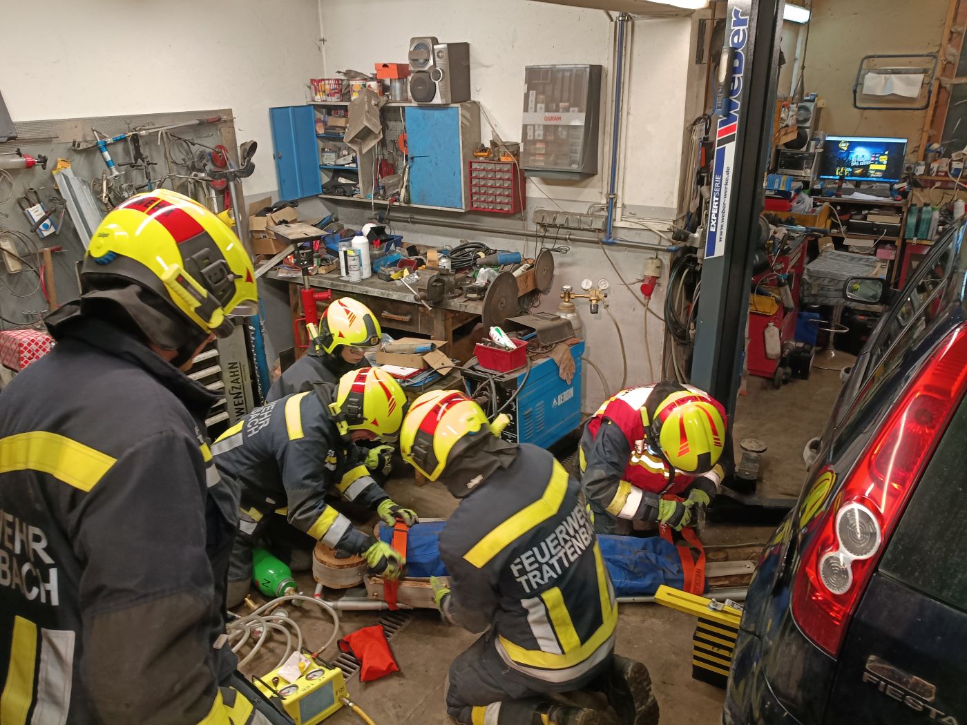 Am Donnerstagabend wurde unter anderem eine Menschenrettung unter einer Hebebühne beübt.