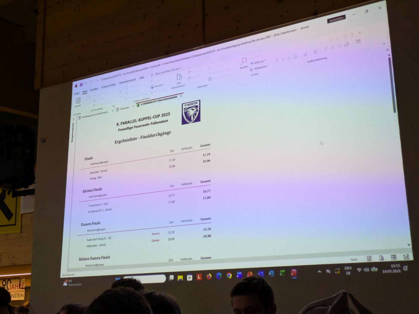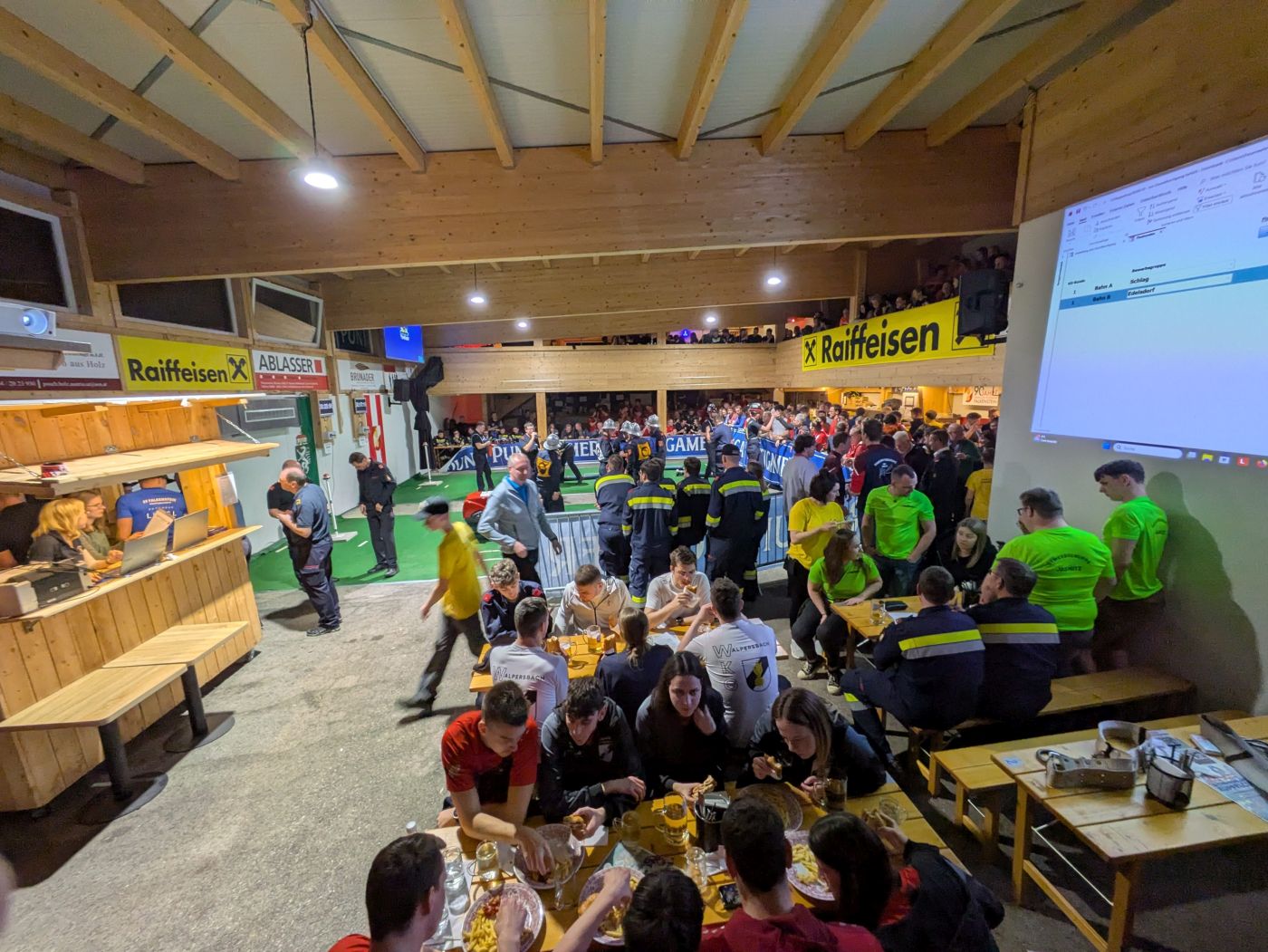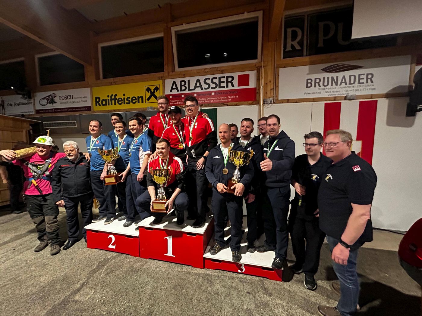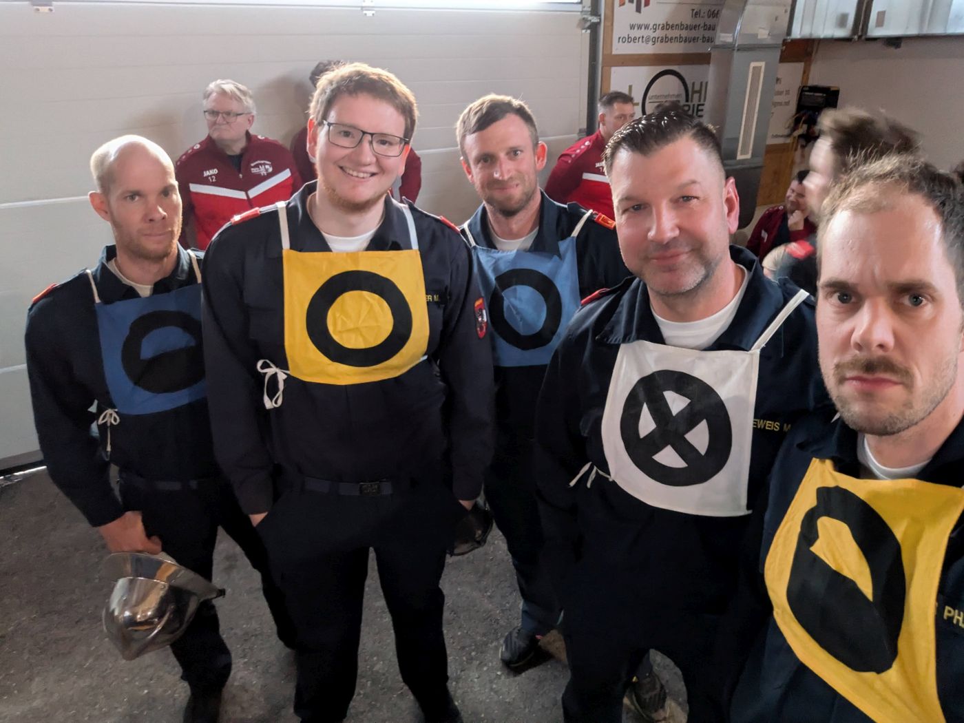 Der Grunddurchgang verlief zunächst durchwachsen: Im ersten Lauf passierten noch Fehler (22,05 + 5), im zweiten Durchgang konnten wir uns mit 18,07 bereits steigern. Wie erwartet lagen die Favoriten Falkenstein, St. Nikolai im Sausal, Schlag und Kleinfrannach vorne.