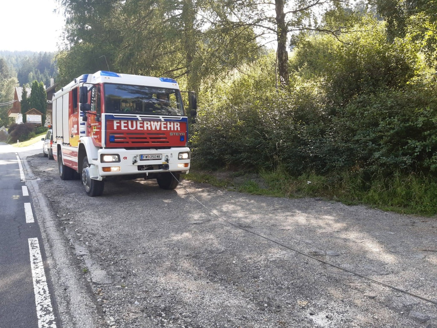 Ein verunfalltes 5.5 Tonnen Fahrzeug war laut Alarmierung am Feistritzsattel zu bergen.
