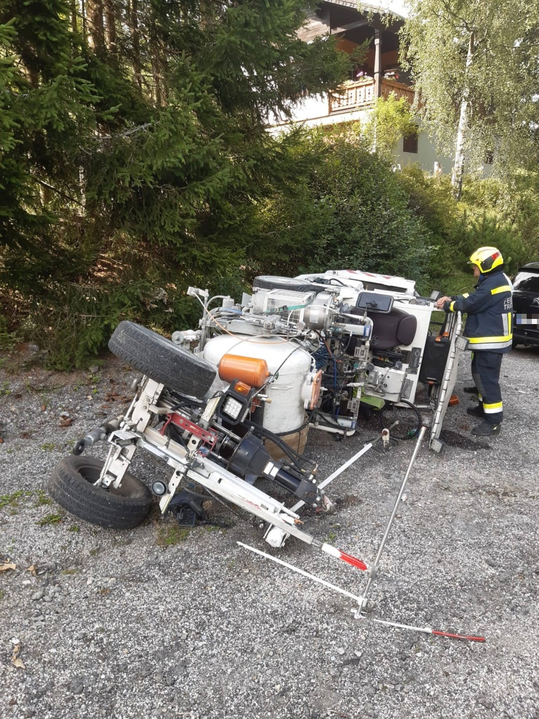Bei der Ankunft am Einsatzort stellte sich heraus, dass ein Straßenmarkierungsfahrzeug verkehrt in eine Böschung rollte und danach umkippte. Der Lenker des Fahrzeuges konnte dabei rechtzeitig abspringen. Mittels Seilwinde konnte das Fahrzeug rasch wieder aufgestellt und gesichert abgesetellt werden.